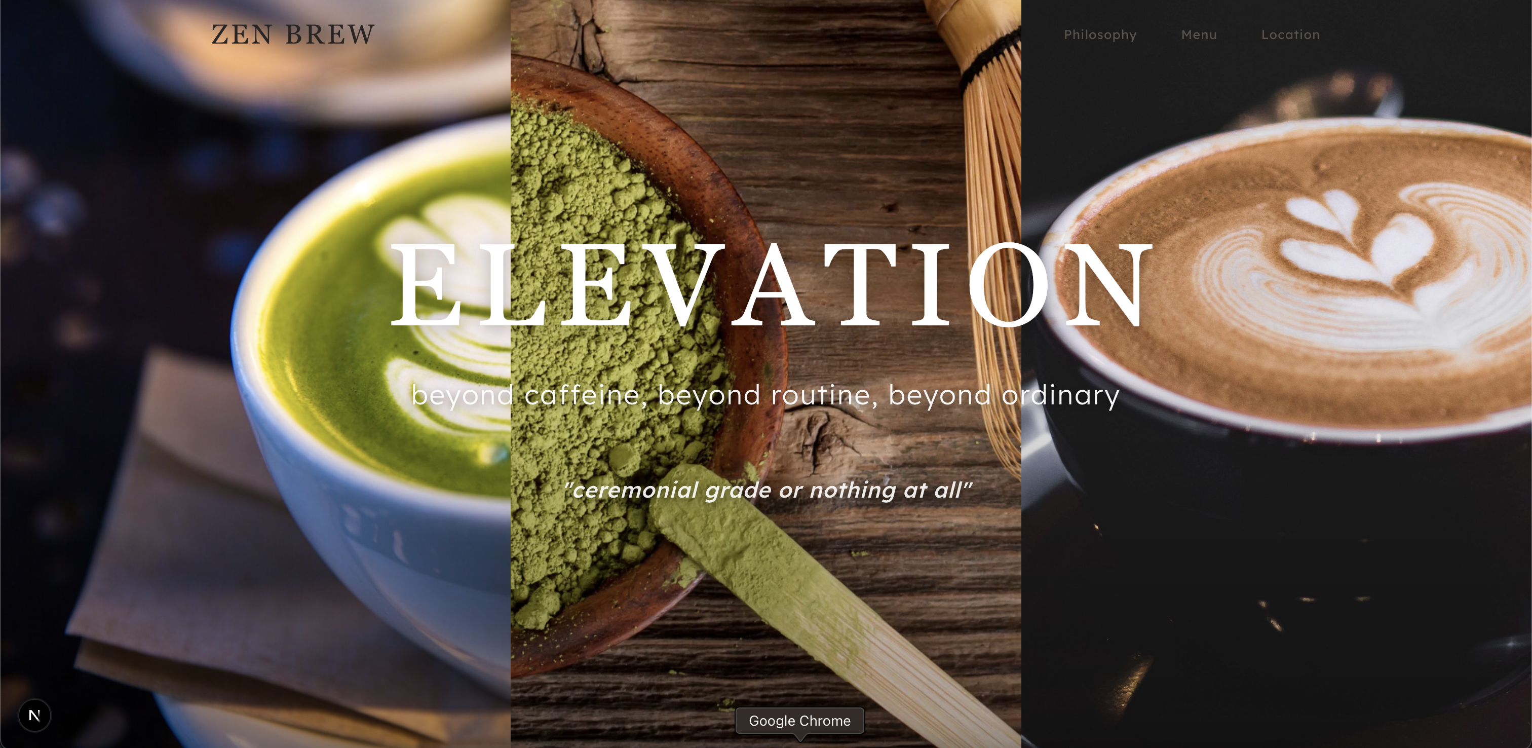 Sophisticated coffee shop website featuring ceremonial-grade matcha, specialty coffee, and Japanese-inspired sweets with a clean, modern design and elegant typography.